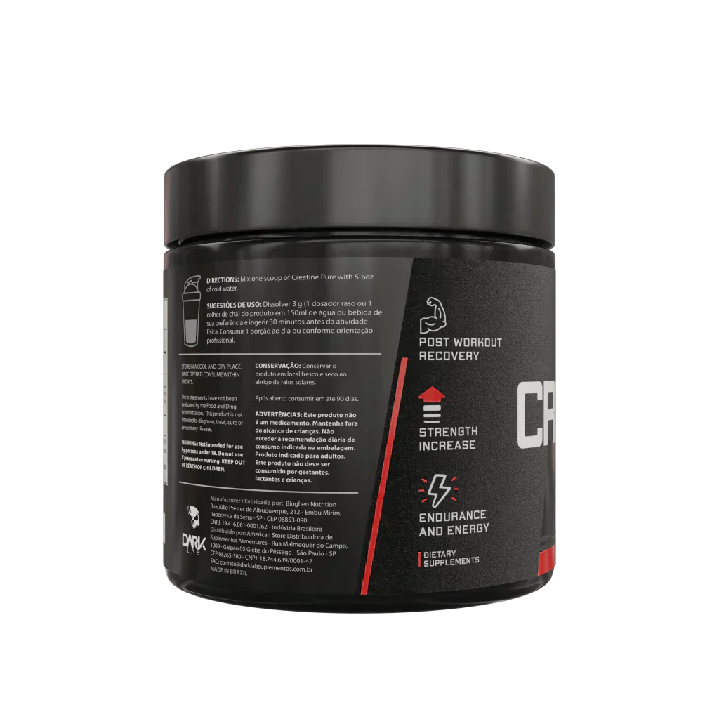 A Creatina Pura é a escolha número 1 para atletas e praticantes de musculação que buscam melhores resultados. Com 150g de poder puro, a Creatina Pura Dark Lab é a solução para aqueles que buscam aumentar sua força, resistência e explosão muscular. Produzida com a mais alta qualidade e pureza, a creatina é rapidamente absorvida pelo corpo, proporcionando benefícios incríveis. A creatina é um composto produzido naturalmente pelo nosso corpo e armazenado nos músculos, onde é usada como fonte de energia para atividades de alta intensidade e curta duração. Com a Creatina Pura Dark Lab, você tem a garantia da mais alta pureza do mercado, com uma variação mínima de apenas 1.9%, totalizando 98,1% de pureza na matéria-prima. Isso significa que você está consumindo a melhor creatina disponível no Brasil.