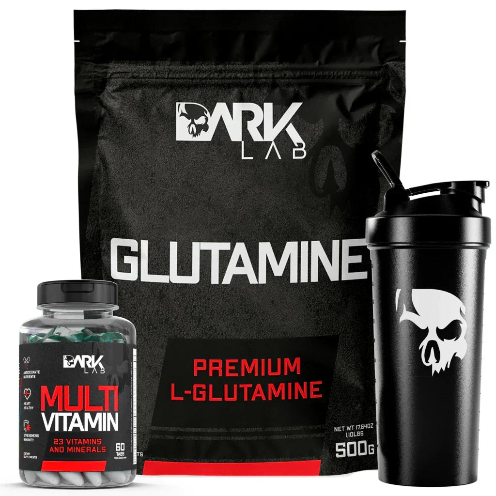 O Kit Imunidade e Equilíbrio da Dark Lab foi desenvolvido para quem busca fortalecer o sistema imunológico, melhorar a recuperação muscular e manter uma rotina de cuidados com o corpo e a mente. Composto por L-Glutamine 500g (Refil), Multivitamínico e a sofisticada Coqueteleira Premium Preta 700ml, este combo une nutrição, funcionalidade e estilo para te acompanhar onde for.