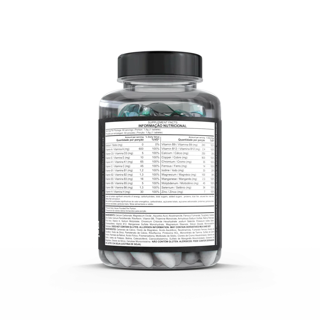 Com uma combinação equilibrada de vitaminas e minerais, o multivitamínico apoia a saúde geral do organismo, promove mais energia e ajuda a manter o bom funcionamento do metabolismo.