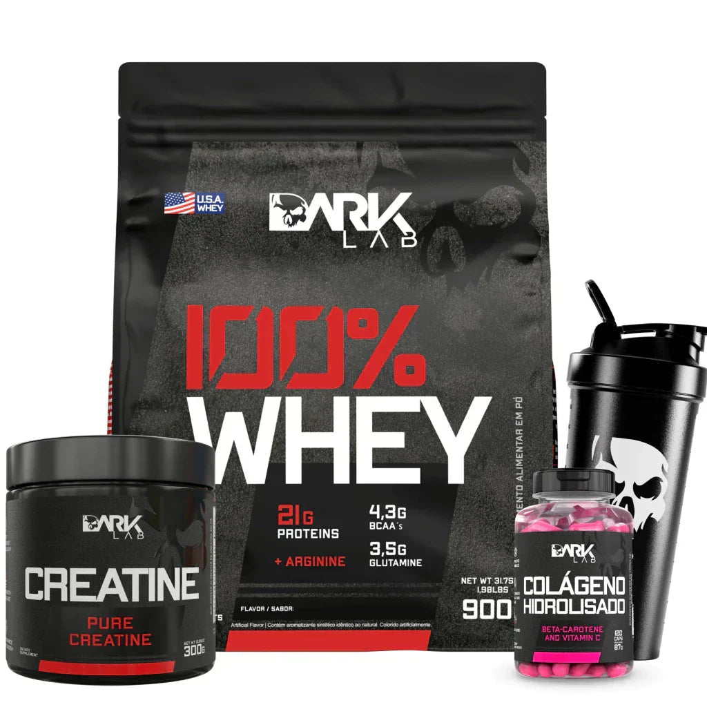 O Kit Saúde e Beleza Feminina da Dark Lab foi desenvolvido especialmente para mulheres que buscam cuidar do corpo de dentro para fora. Composto por Colágeno Hidrolisado, 100% Whey Protein, Creatina Pura e a exclusiva Coqueteleira Caveira Preta com Rede, esse combo une nutrição, estética e performance em uma fórmula completa de bem-estar.